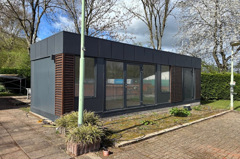 Das neue Vereinslokal direkt an den Tennisplätzen des ASC Ratingen West wurde mit Hilfe des Förderprogramms „Moderne Sportstätten 2022“ der NRW-Landesregierung finanziert. Mit dieser Investition schafft der Club die Grundlage für eine moderne, energiesparende und flexible Nutzung bei Turnieren, Vereinsfesten und sonstigen Veranstaltungen. Die Container bieten nicht nur eine Küche, sondern auch zusätzliche Möglichkeiten für die Organisation von Events und Lagermöglichkeiten direkt auf der Anlage. Die alte Vereinshütte war marode und nicht mehr zeitgemäß, so dass sie abgerissen werden musste.